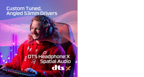 | Angled 53mm drivers have been tuned by HyperX audio engineers to provide the optimal listening experience that accents the dynamic sounds of gaming. |