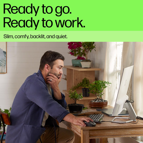 With warm white illuminated keys, this ready-to-go keyboard never misses a beat. Plug into your device and grind away with quiet keys and three levels of backlit LED glow. Plus, skyrocket your productivity with 12 programmable keys. Work and play all day on the slim and sanitizable[1] HP 400 Backlit Wired Keyboard.