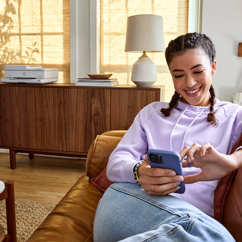 Modernise your space with HP's sleek, compact printer, seamlessly complementing your workspace or living area. Choose an HP printer with a sustainable design, helping to reduce waste – made with 60% recycled plastic.[5] |